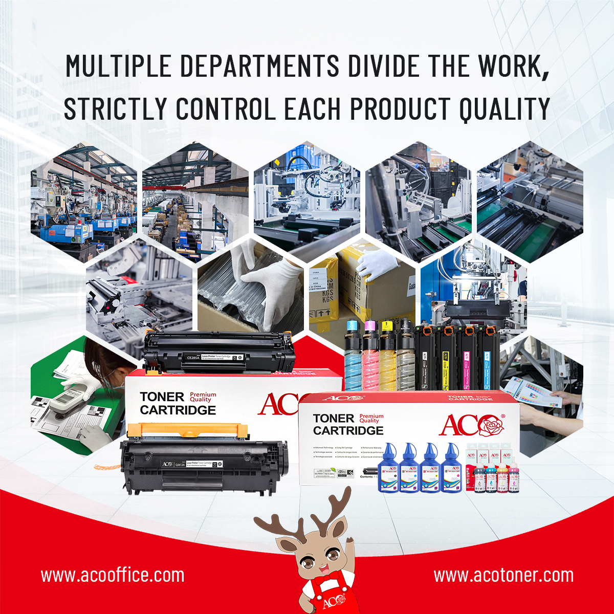 The ACO toner cartridge factory employs a multi-stage quality control process, with an experienced quality control team inspecting each product to ensure it is in perfect condition before leaving the factory.
